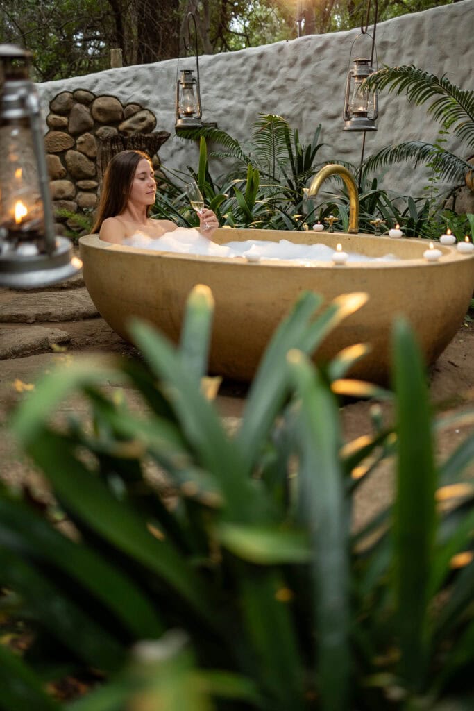 The Premier Suite at Kuname Safari Lodge is designed as the ultimate retreat for honeymooners. Secluded and intimate, it features an outdoor garden with a free-standing stone bath and open-air shower, inviting long moments of relaxation beneath the sky. Inside, elegant décor and warm natural tones create a cosy atmosphere, while a private balcony opens to views of the Kuvenyami River and surrounding wilderness. Romantic, private and deeply connected to place, it is a suite made for unforgettable moments.